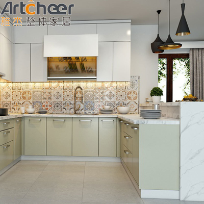 Зеленый цвет кварцевый камень верхний U-образный кухонный шкаф для современного стильного дизайна кухни